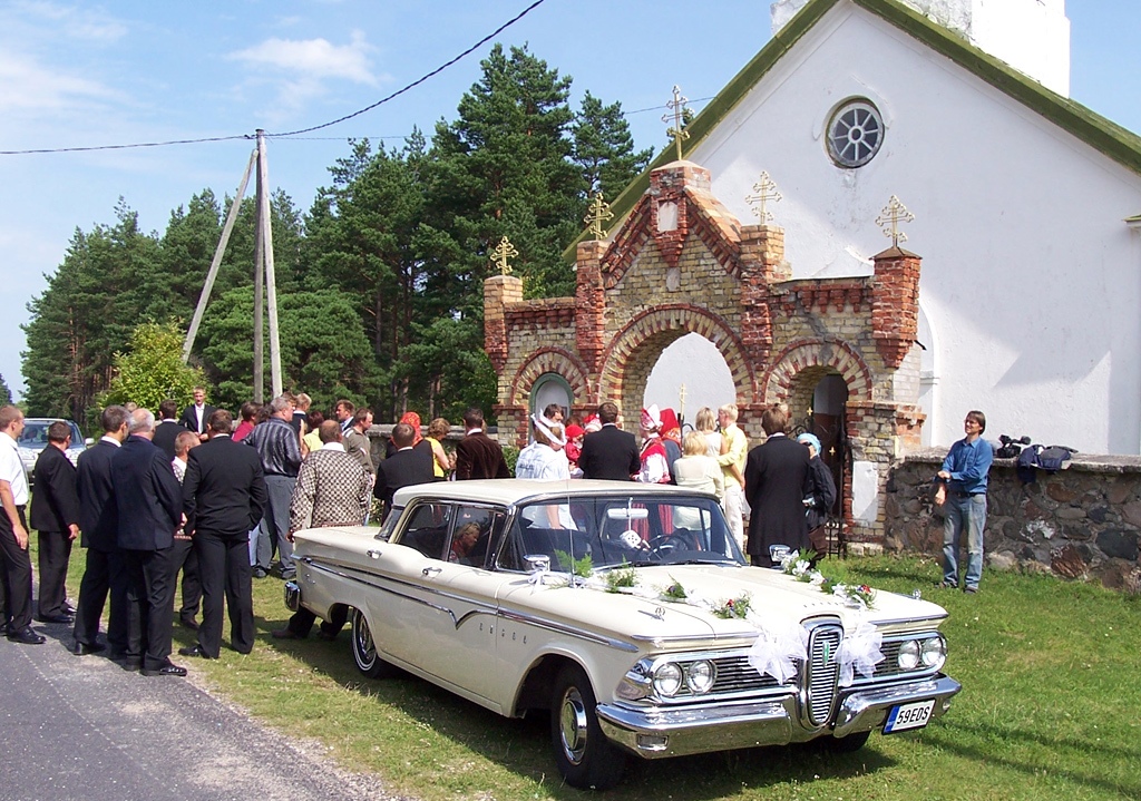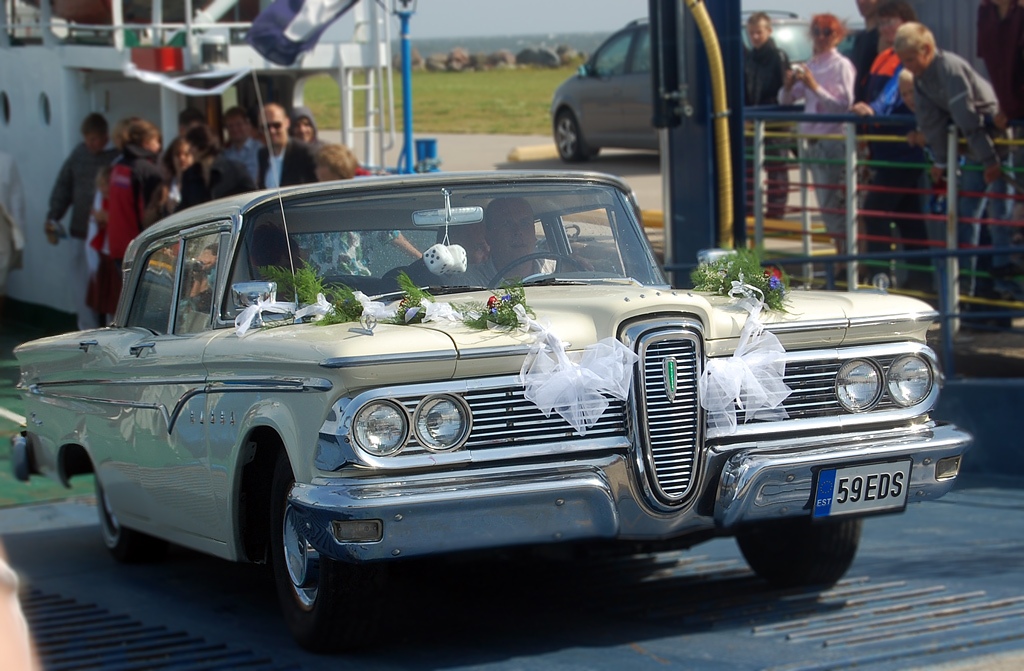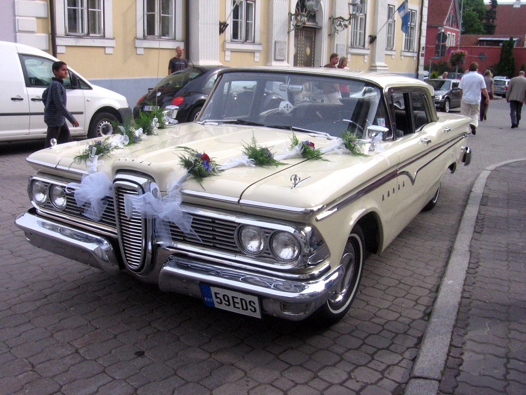Keväästä syksyyn voi meiltä vuokrata hääajelua varten Ford Edsel Ranger 4 Door Sedan 1959.