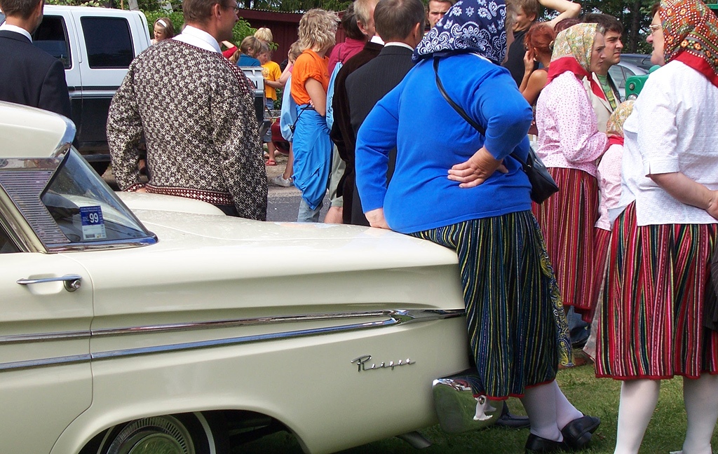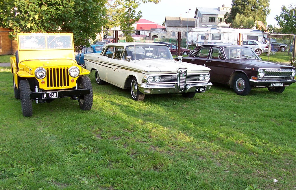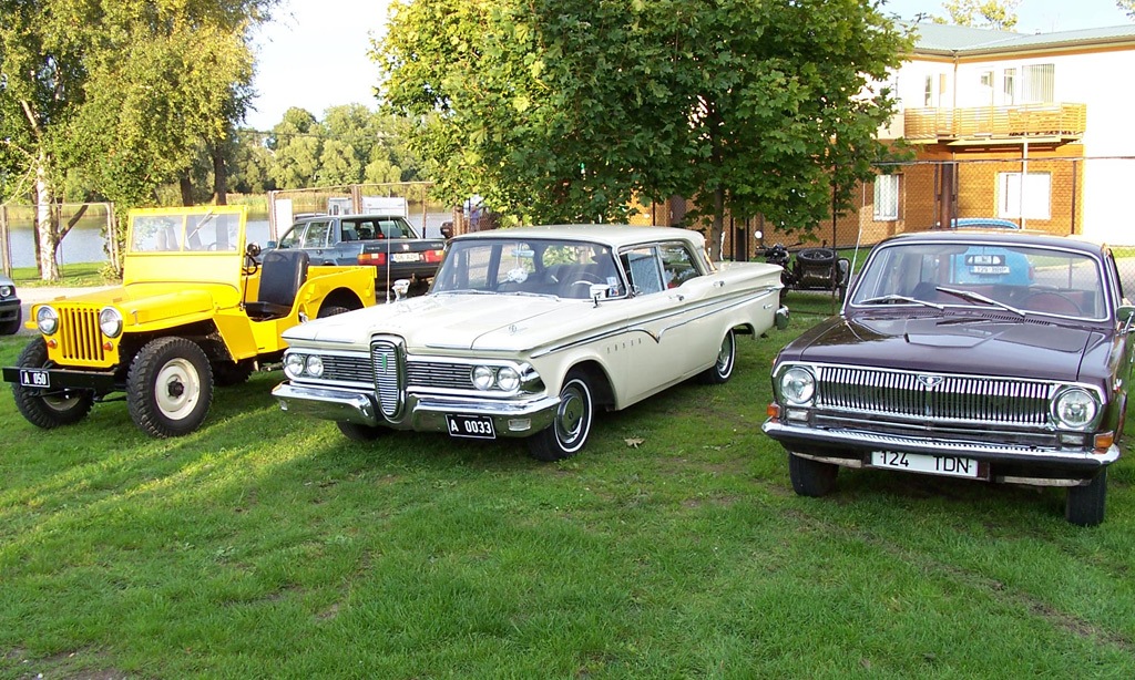 “Ameriikkalaisten” vieressä seisoo ESNT:n kolhoosijohtajien suosikkiauto Volga M24.